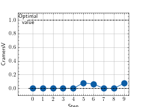 >>> # Example plotting a single value >>> import torch >>> from torchmetrics.nominal import CramersV >>> metric = CramersV(num_classes=5) >>> metric.update(torch.randint(0, 4, (100,)), torch.randint(0, 4, (100,))) >>> fig_, ax_ = metric.plot()