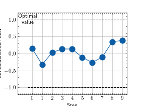 >>> from torch import randn >>> # Example plotting multiple values >>> from torchmetrics.regression import ConcordanceCorrCoef >>> metric = ConcordanceCorrCoef() >>> values = [] >>> for _ in range(10): ... values.append(metric(randn(10,), randn(10,))) >>> fig, ax = metric.plot(values)